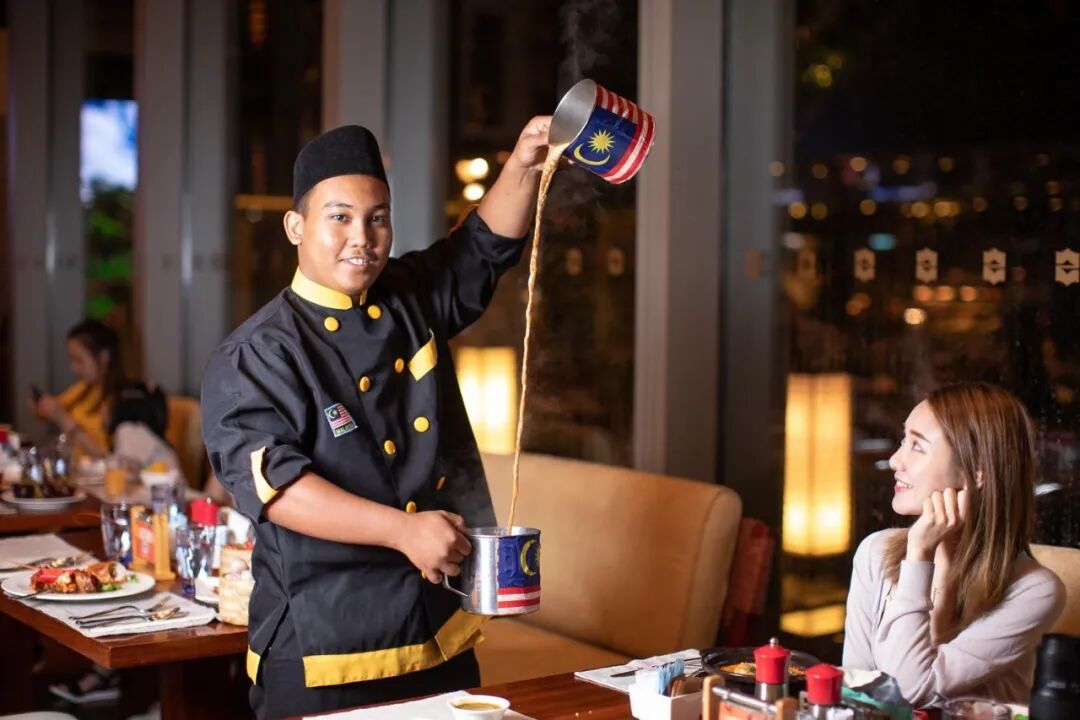 说到马来西亚茶歇最典型的就是马来西亚拉茶,因使用炼乳和这个“拉”的制作动作闻名