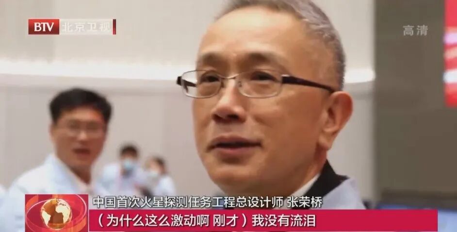 那一刻,中国探火工程总设计师张荣桥忽然落泪,这一幕被工作人员拍到后他又很快离开了镜头。
