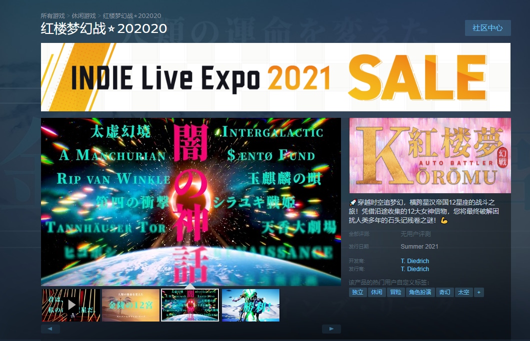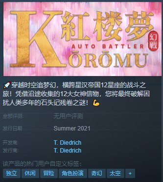 而且,这个叫做T. Diedrich的开发商,在互联网上也完全搜索不到,点开其发行列表,也仅仅只有《红楼梦幻战⭐202020》这款游戏而已。