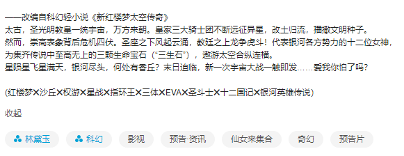 改编自科幻轻小说《新红楼梦太空传奇》?实际上,这一本书根本就不存在。