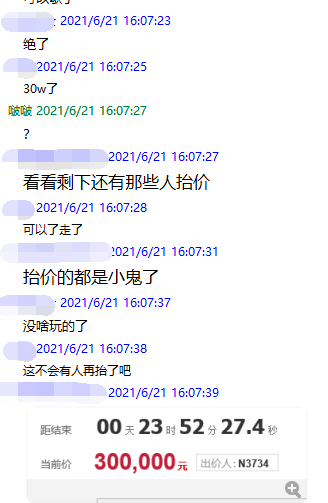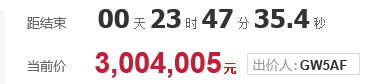 16:00,拍卖开始。一开始,涨价幅度都还很正常,虽然最高出价人的交替速度极快,但一次也就加个两三位数。