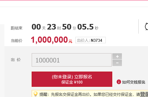 拍品详情页上的数据,彰显着这个拍品的吸引力:有将近2万人缴纳了100元保证金参与竞拍,7万多人设置了拍卖提醒,73万多人曾经浏览过这个界面。