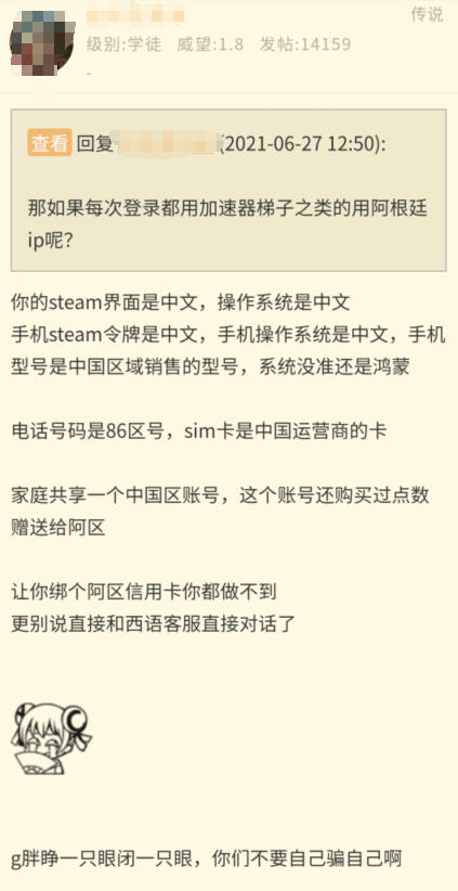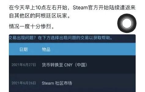 然而在公告发布仅仅4天后,6月27日上午10点,部分网友就发现自己的阿根廷账号被Steam官方给遣返了,不仅账号区域变为了中国大陆,电子钱包余额也全部变成了人民币。