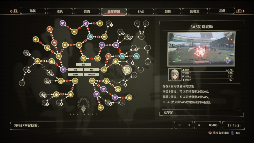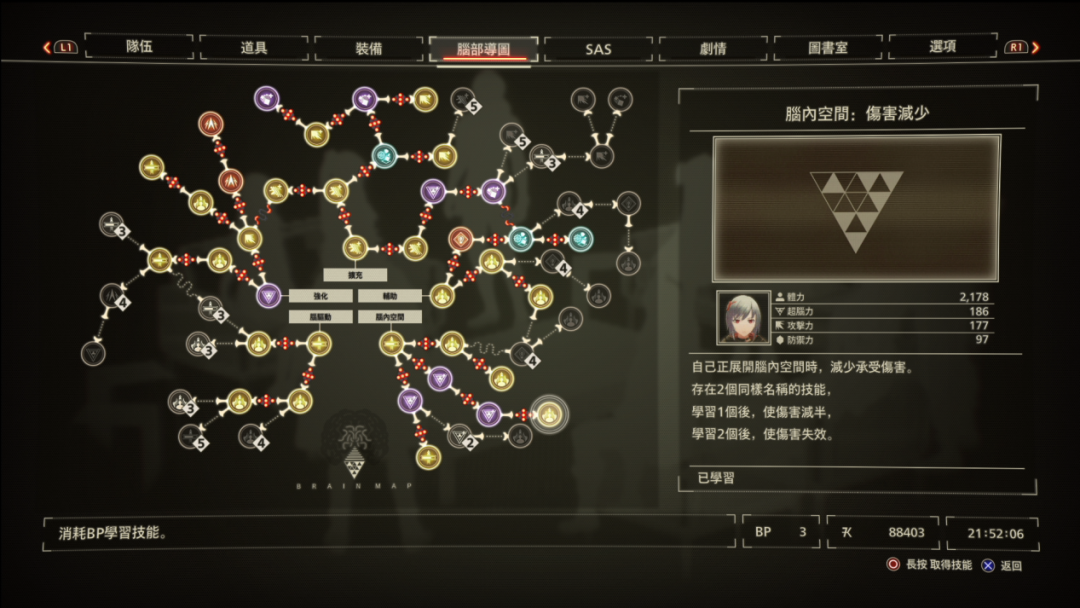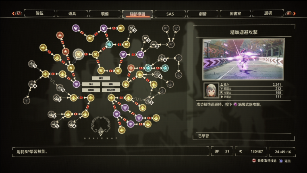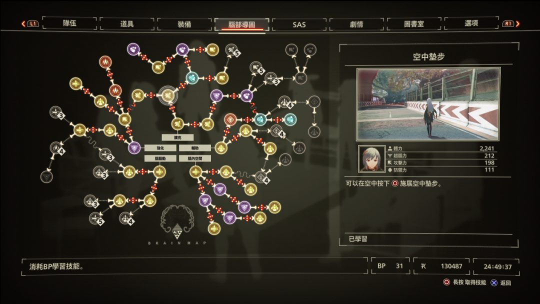 最后再来聊聊本作的脑部导图,即技能树系统。