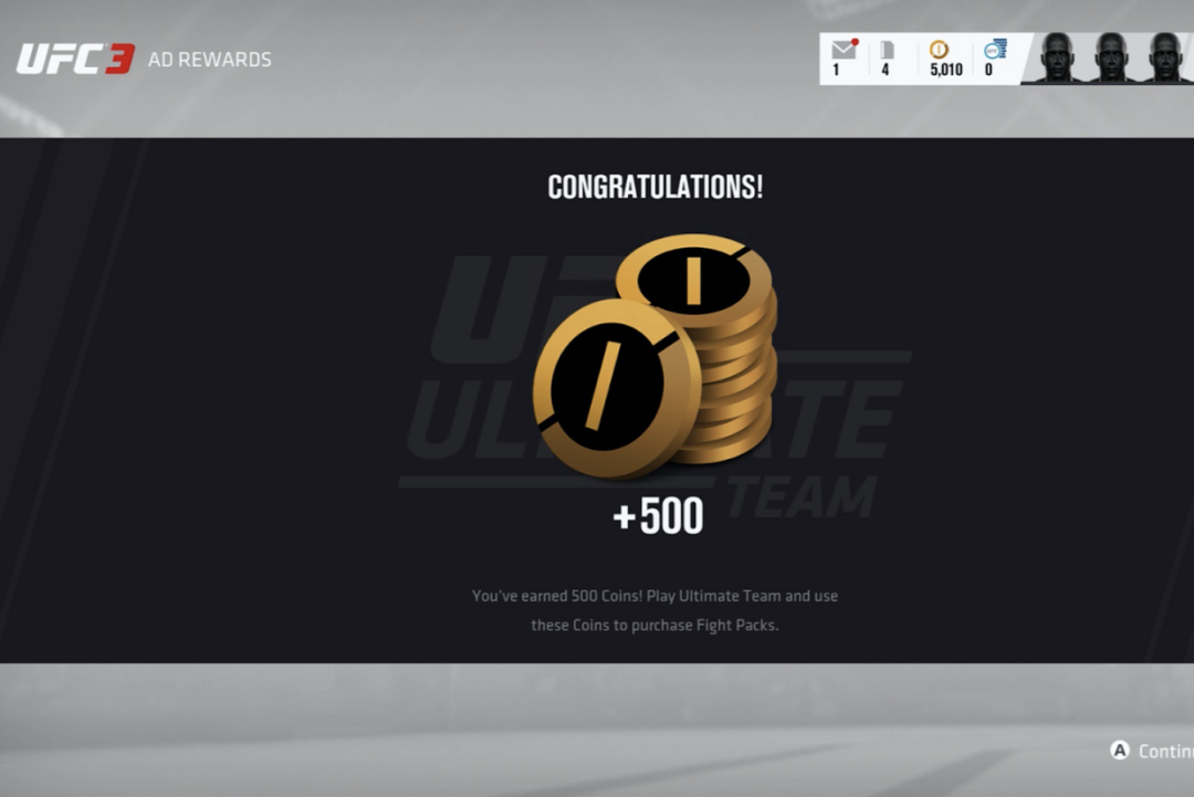 在前作《UFC3》里EA采用的是类似“PlayerWON”的广告奖励做法,显然这么做都不足以满足他们的胃口了