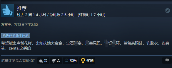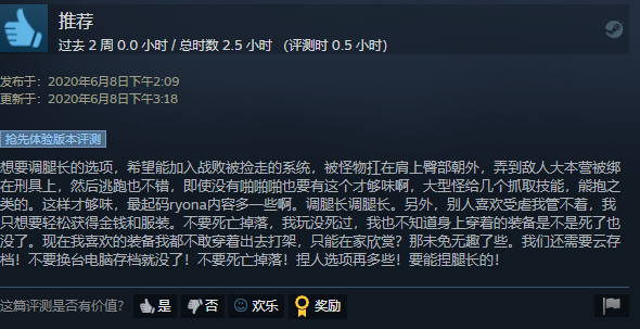 《惩戒魅魔》的评测区可谓一派和谐,四处洋溢着“好人一生平安”的温暖气息。出现最多的评论类型,是给制作组提出一些修改优化的方向和建议……顺便暴露一下自己的性癖: