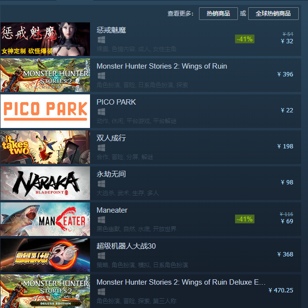 说实话,看到这个情况,我有点懵逼。想要知道究竟发生了什么的我,抱着科 学 探 究的心态,点进了《惩戒魅魔》的商店界面。到底是什么样的一款作品,受到玩家们如此热烈的欢迎?