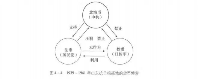 由于北海币的反击,山东地区逐步形成了北海币、法币、伪币三足鼎立的货币形势,法币在1939年-1941年占据绝对优势,不管是北海币还是伪币都需要法币,才能更好实现流通。