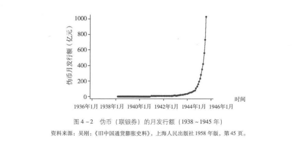 1937年7月7日,卢沟桥事变爆发,全国开始全面抗日战争。日军于9月30日入侵山东,到1938年3月7日于威海登陆,占领胶东地区。至此,山东大部分地区为日军所占,成为沦陷区。1938年3月5日,日军成立伪山东省公署,下设道、县公署,通过伪政权设立一系列伪银行,其中的伪中国联合准备银行主要控制华北地区,在山东地区发行“伪联银券”(简称“伪币”)。日军以军事手段在占领区和游击区强制推行伪币,仅1938年3至12月就发行了7.88亿元。此后伪币疯狂滥发,详见下图。