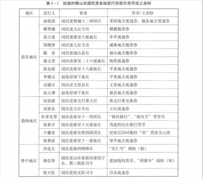 山东国民党各级政府和军队还滥发了大量纸币和流通券(简称土杂钞),政府可以出票子,投降派的一个团长、一个营长都可以随便发土钞,最后全是一堆废纸,物价飞涨,人民生活更加苦难。当时《大众日报》登载:价值一千元本位币(法币)的一头牲口,在莱阳用赵保原(国民党暂编十二师师长)出的票子,就得将近十万元。