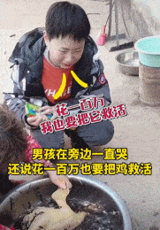 原来是这个10岁的小男孩,因为奶奶过年杀鸡而崩溃大哭,视频当中这名小男孩正哭得伤心呢,并且他边哭边大声对奶奶说:如果能把这个鸡抢救过来,我花100万也行!