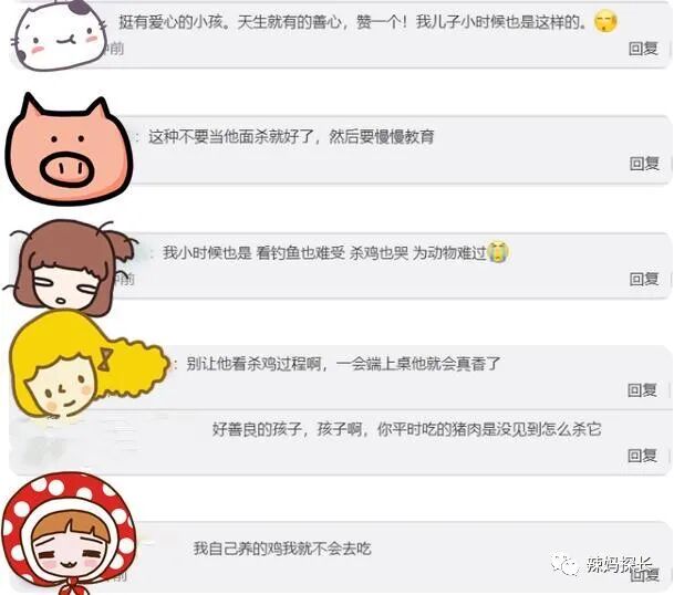 当然了,有些大人可能会觉得不就是杀一只鸡嘛,孩子早晚都会要面对的,如果现在不这样做的话,那以后孩子内心太脆弱的话得要怎么办呢?