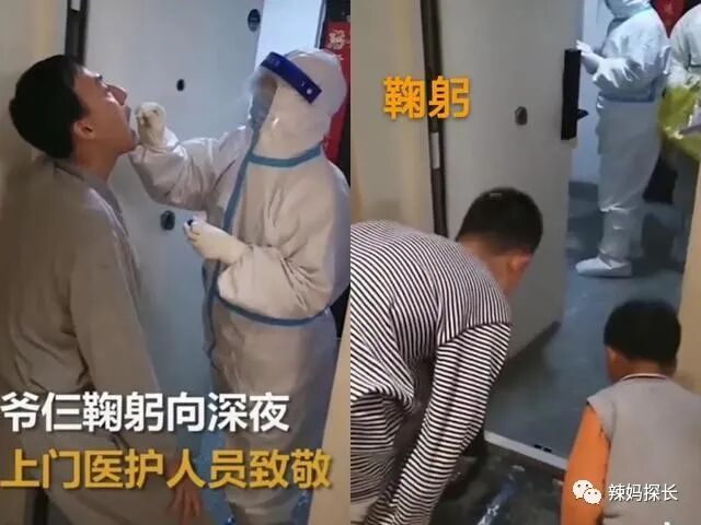王先生在检测人员到自己家进行核酸检测时,毕恭毕敬地给检测人员深深的鞠了一个躬。