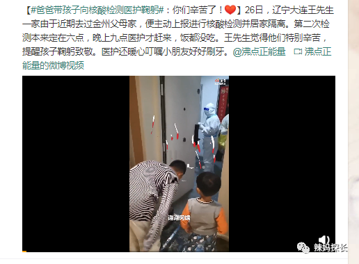 虽然只是一个简简单单的鞠躬,但是却让检测人员倍感温暖,觉得自己深受鼓舞,也体现了这个家庭的教养。