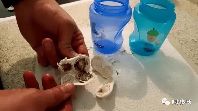 曾经有位宝妈,把自家孩子用了很长时间的吸管杯的零部件逐一拆开,居然发现各个清洗不到的死角简直是细菌的培养皿,水杯里居然有很多黑色的,像霉菌一样的东西。仔细一闻还能够闻到一股发霉的味道,真的是比抹布还脏。