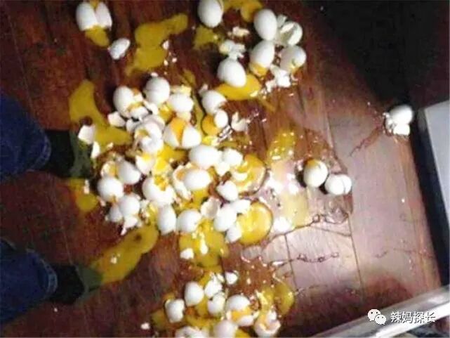 当时孩子的妈妈正在选蔬菜,并没有留意孩子,结果一不小心孩子就把一兜鸡蛋全部都给打碎了。