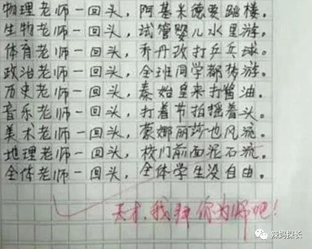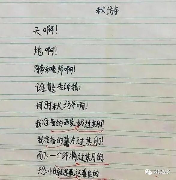 这位小学生的这一篇即兴诗歌,语言既惊艳又真实,让老师看完之后都忍不住得捧腹大笑:这孩子的智商已经超出了地球,这语言也太过于真实了吧。
