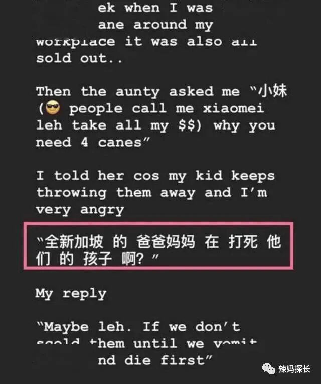 一位新加坡妈妈,更是在自己的动态上坦言:之所以给孩子买藤条,是不希望把自己给气到,不想让自己折寿。