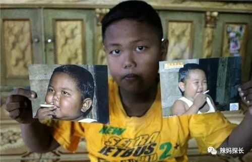 这位男孩其实来自于印度尼西亚,他名字叫做阿尔迪,从两岁开始他就喜欢抽烟,之后便没有停止过自己抽烟的“脚步”。