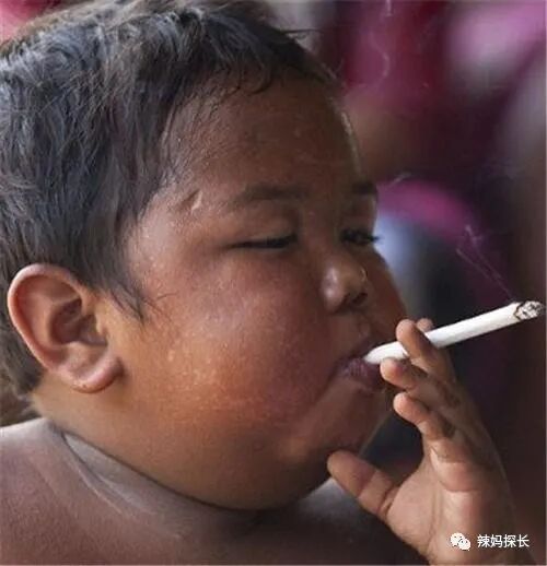 这位小男孩沉迷于香烟中,一天抽不到烟就大哭大闹,甚至于会拒绝进食。虽然男孩才两岁,父母面对孩子的哭闹无可奈何,于是便默认了他的抽烟行为,之后这男孩抽烟越来越猛,一天要抽40多根烟。