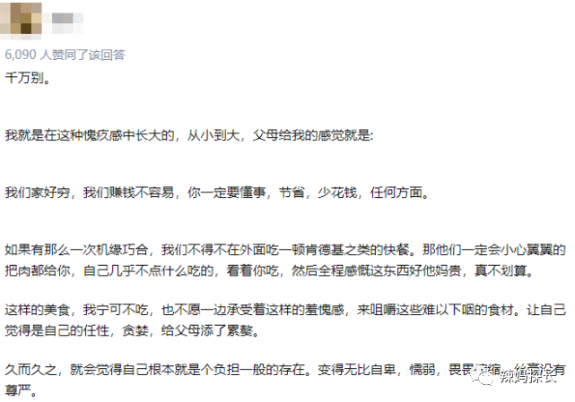 孩子知道自己这一顿饭就要花掉父亲的这么多钱,他会觉得自己对不起父亲。从孩子一开始拒绝点菜的做法,其实也可以看得出来,平时孩子就活在这种愧疚当中,以至于让他不敢花父母的钱。