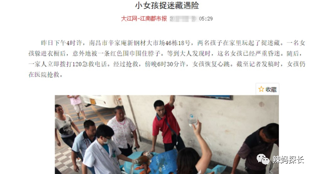 经历了这样惊心动魄的一幕之后,朋友再也没有跟孩子在户外玩过捉迷藏。以前只觉得户外玩捉迷藏能让孩子开心,自己也就陪孩子玩玩,现在才知道原来户外捉迷藏这么危险。