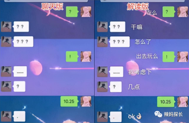 ★学生A回复一个1则是想约对方出去玩,学生B打一个问号是问对方什么时间?而学生A的10点25则是代表10点25分。