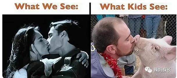 或许大人认为这是一男一女在接吻,但是在孩子看来,这可能就是两个动物在表达亲热,父母和孩子的视角实在是太不相同了。