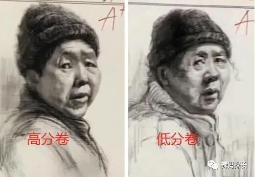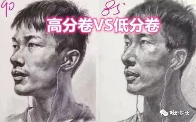 而专业人士在看到了这两组画之后,纷纷表示高分卷的人画的明显要更加惟妙惟肖,其明暗对比要更加强烈: