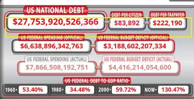 不仅于此,过去四年间,美国联邦债务总额从19多万亿美元起步,增加了约8万亿美元,相当于此前8年的总和。而目前27.55万亿美元的债务总额水平,已达到1958年只有2800亿美元的约100倍。有分析预计,到到2028年时,美国联邦债务总额可能就会高达48万亿美元,超过美国GDP的250%。