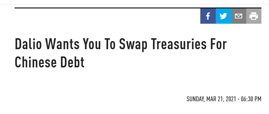 事情的另一个新变化是,我们在昨天的报道中援引美媒在3月21日以一篇题为"达里奥请您把美债换成中国债券"中的文章称,全球最大对冲基金创始人雷.达里奥表示,投资者抛售美债购买中国债券,是经典周期的一部分。达里奥进一步称,当前的市场环境中,全球央行和其他国际投资者持有美国国债的三分之一以上,而中国债券仅占6%。显然,未来增持中国债券的比例将有很大上升空间,全球大量资金将持续流入中国。