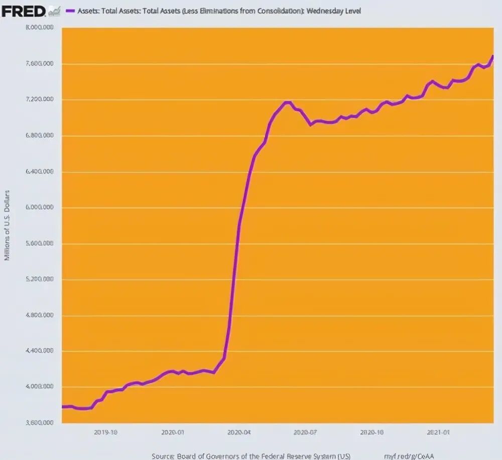 据路透最新监测到的数据显示,在过去的46周内,包括前不久确认的1.9万亿美元和日前宣布的2.25万亿美元的大基建计划在内,美国已经向市场通过美联储资产负债表扩张,购买各期限债券及各种经济刺激方案,累计宣布或计划放水印钞近23万亿美元的货币流动性。分析认为,所有这些迹象,都在使美国经济濒临巨大的债务困境。