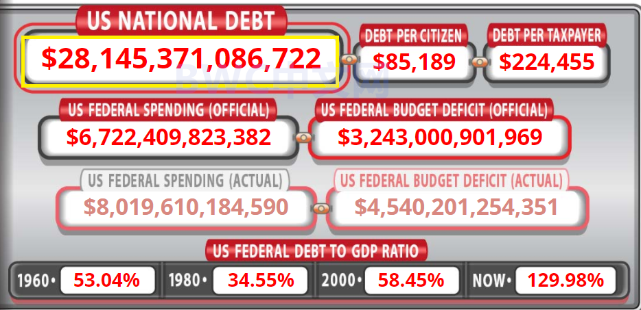截至4月9日,美国联邦债务总额已高达创纪录的28.15万亿美元,占美国GDP的130%。而按整数计算,每个美国人(男人,女人,儿童)背负的美国公共债务为85,189美元,或每个纳税人为224,455美元。而针对美国最新推出的总额约2.25万亿美元的基础设施建设一揽子计划,迹象表明,这2.25万亿美元依然需要通过发债的方式来融资。