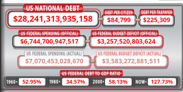 根据路透社5月3日最新消息,自今年1月20日以来,美国提出的防疫刺激与经济复苏计划总规模约为6万亿美元。而截至5月3日,美国联邦债务总额已高达创纪录的28.2万亿美元,因此,上述6万亿美元的出处,目前已成为美国经济一个棘手的问题。换言之,美国联邦债务太多,通过发债或难以应对