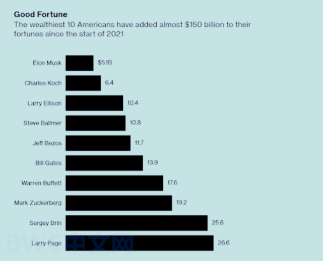 不仅于此,自2020年11月4日至今年1月20日期间,这100位美国最富有的人财富总共增加了2,670亿美元,也就是说,自去年11月到目前为止,他们增加的财富总共增加了4610亿美元。值得一提的是,自1月20日以来的100天这个时间段增加的1950亿美元已高达此前4年累计增加8600亿美元的20%。这一数字显得非常惊人,同时,进一步佐证了BWC中文网独家分析提及的,美联储大规模印钞放水的最终受者只有少数离美元印钞机最近的那部分精英,而并非大多数美国人。