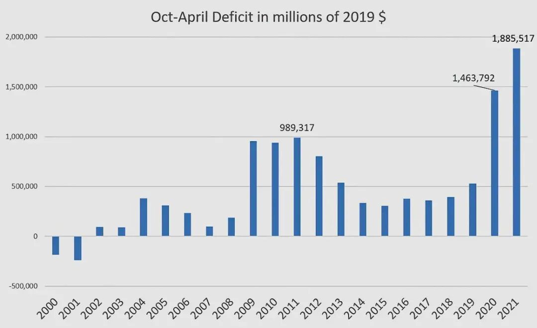 美国财政赤字正在急速增加
