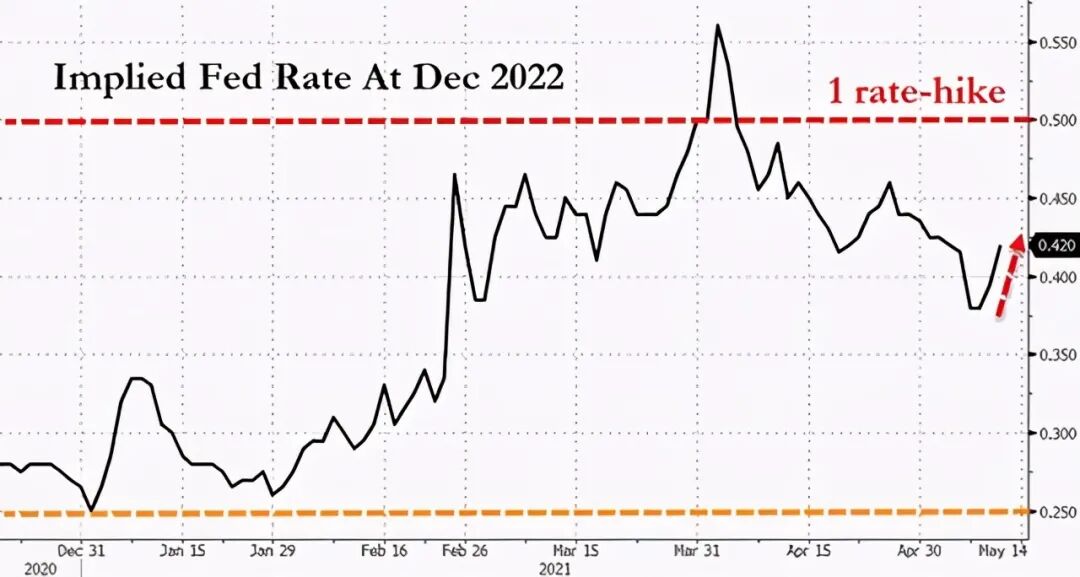 而通过美联储的资产负债表的数据来看,此时美联储或已近乎于“弹尽粮绝”了,换言之,放出去的水,太多了。据多家媒体5月20日报道,美联储最新发布的会议纪要显示,美联储对于在接下来几次会议上讨论收缩购债持开放态度,暗示愿在“某个时候”讨论收缩购债计划,利率市场应声提高升息预期,目前预计到2022年末,美联储可能加息约20个基点。