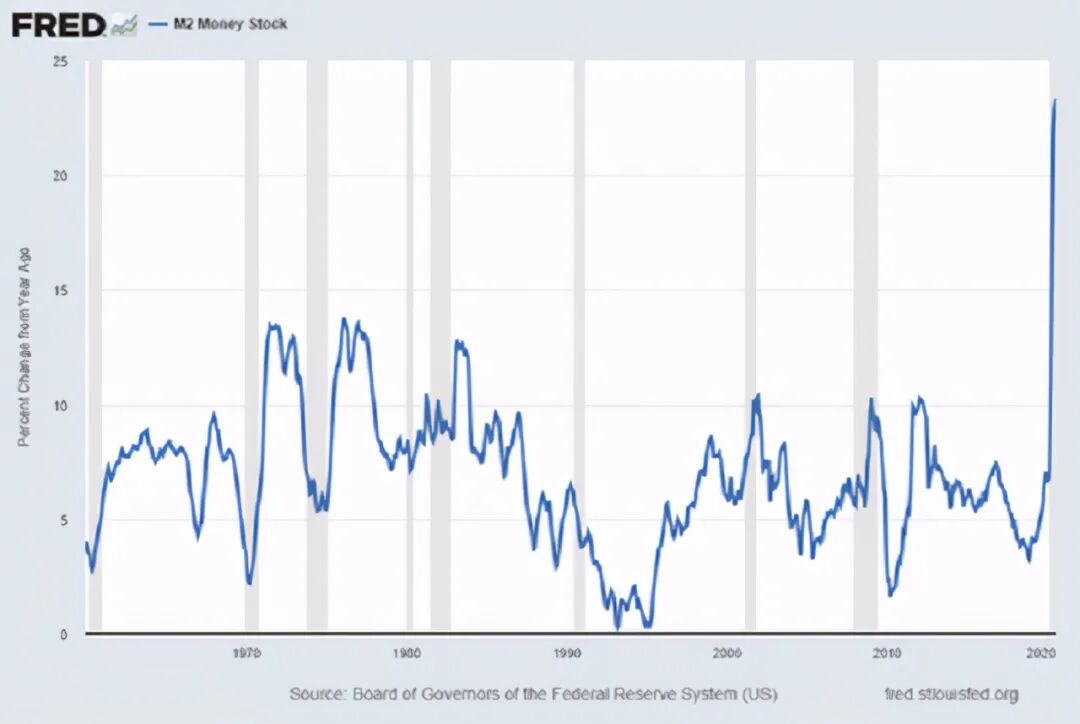 然而,值得玩味的是,美联储正不断将美国债推向货币化的边缘,美国M2在2020年增长了62%以上。而自2009年以来至今,美联储已经将其资产负债表扩大了622%,但在此期间,美国GDP总增长却仅为33.12%。显然,美联储最近一年最大幅度加持美国国债,却没能改变美国入不敷出的事实。