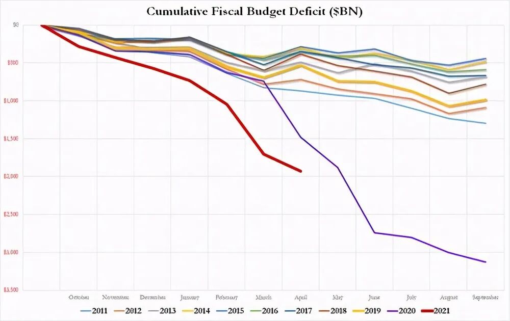 据美国金融网站ZeroHedge援引的数据显示,如果实际房价包括在CPI衡量中,那么美国通胀率在5月将达到5.3%(4月的通胀数值已经超4%),但美联储仍不以为然,声称这只是暂时性的。