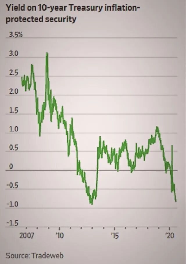 事实上,美联储正坐在老虎的尾巴上,可能很难摆脱即将到来的货币狂潮,该机构表示,随着美国经济复苏加速,甚至是过热,那些放在银行业的超额准备金有可能会引发贷款爆炸式增长。以上这些数据和消息也意味着,一旦时机合适,美国将进入真正意义上的负利率时代,就意味着美债真实收益率直接跌破零,且将常态化,因为,正如下图数据所示,现在美国的真实收益率已经一直在持续下降之中。