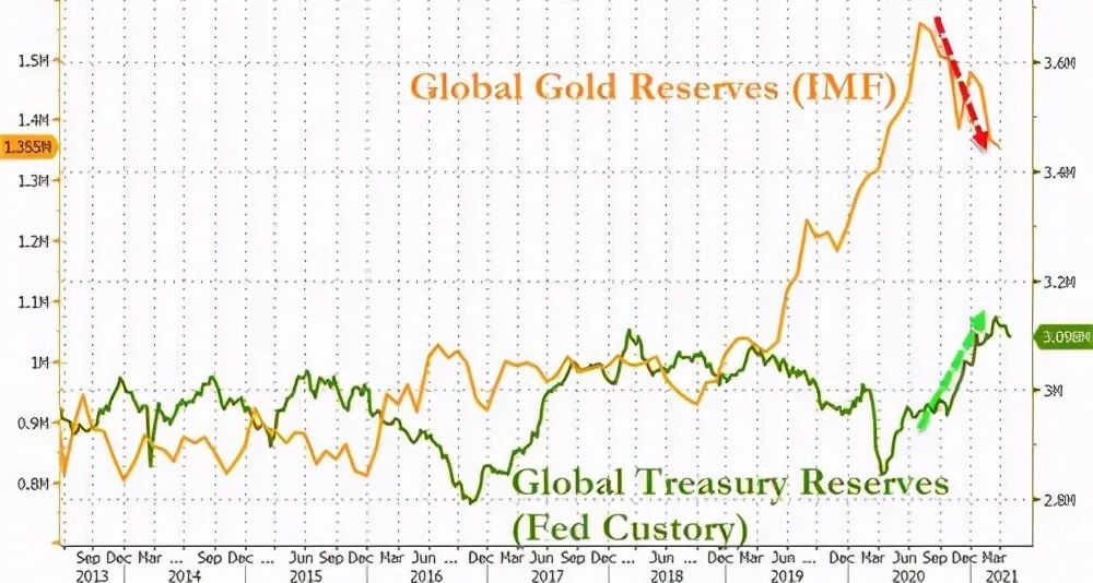 世界黄金协会在6月份发布的最新报告中提到,虽然,目前全球央行购金速度出现放缓,但净购买黄金的数量仍旧继续超过出售黄金的央行数量,花旗预测,全球央行的黄金购买需求将在2021年再次反弹,比如,仅在今年4月份,全球央行官方黄金储备净增加69.4吨,而2021年前3个月,全球央行就已经净购买了95.5吨黄金,其中,匈牙利央行就买了63吨,一季度资金流入全球黄金ETF达3574吨。
