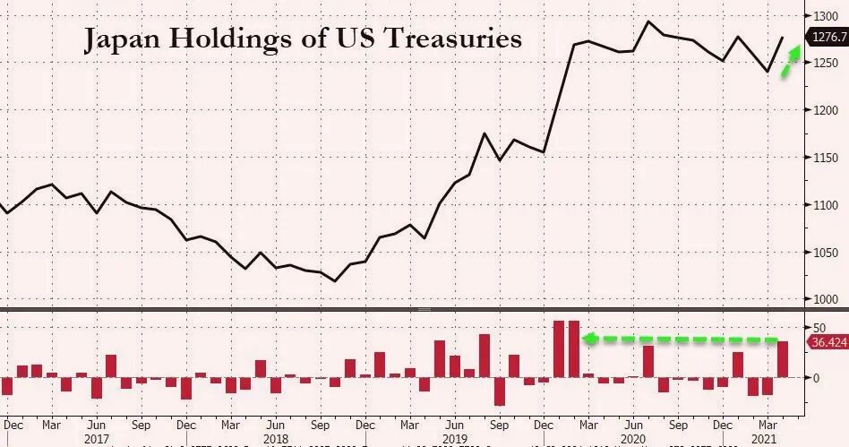 出人意料的是,日本在4月增加美债持有量2.9%至1.28万亿美元,为去年8月以来最高,结束连续两个减持状态,我们注意到,这是日本持有美债在最近九个月里的第二次增持,此前所持美债占美国政府总债务的比例一直处在历史低位。