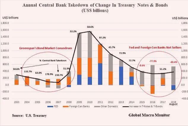 近五年来全球央行购买的美债的走势