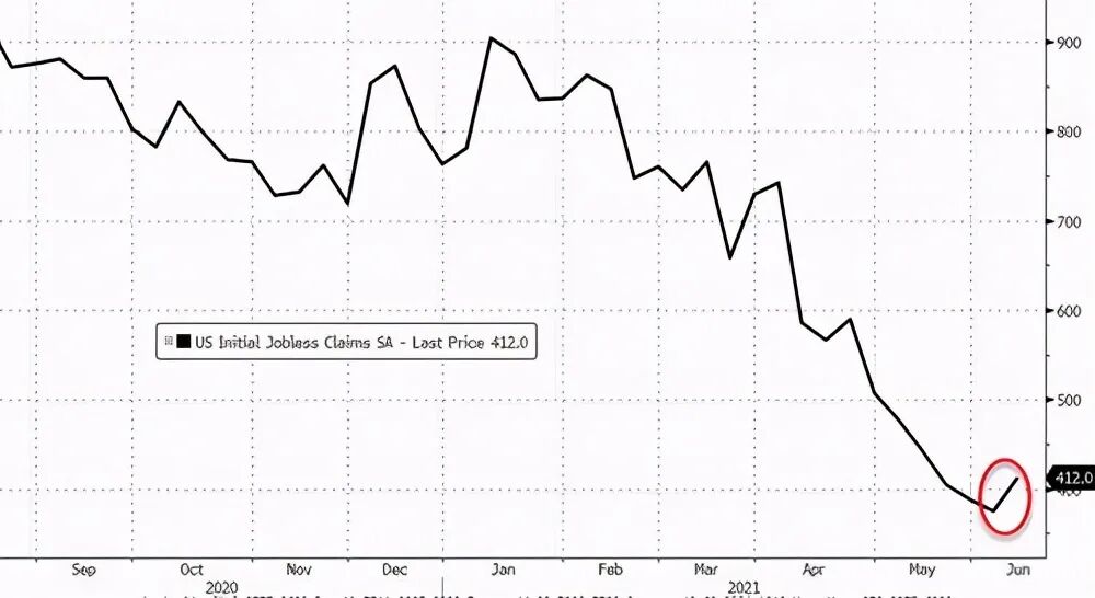 最新数据显示,上周美国初请失业金人数意外上升(从37.5万至 41.2万)。