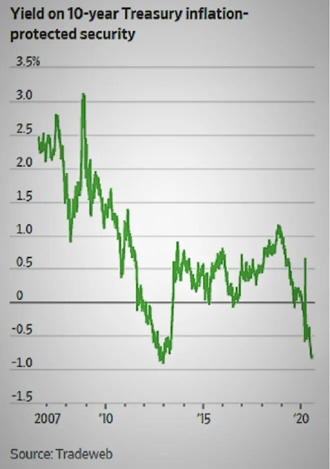 BWC中文网国际财经团队计算发现,7月30日,美国十年期国债收益率为1.244%,据公布的6月通胀率(5.4%)调整之后,10年期美债的实际利率为负4.156%,且负值区间已持续32周,这在美国经济史中是非常罕见的,很明显,这是美联储在货币利率政策上开启无底限政策后的结果。