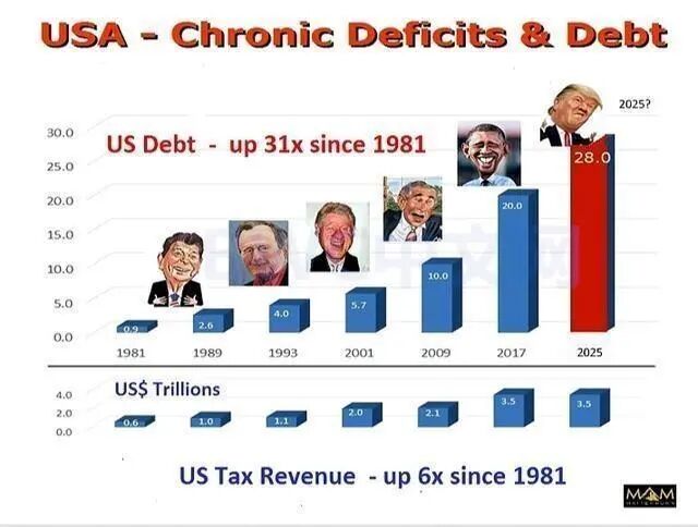 过去数十年间,凯恩斯主义滋生了全球许多发达国家债务不断膨胀,甚至离开债务寸步难行。其中,美国经济就非常明显。截至8月2日,美国联邦债务总额接近29万亿美元的天文数字,已经高达63年前赤字开始时的100倍。