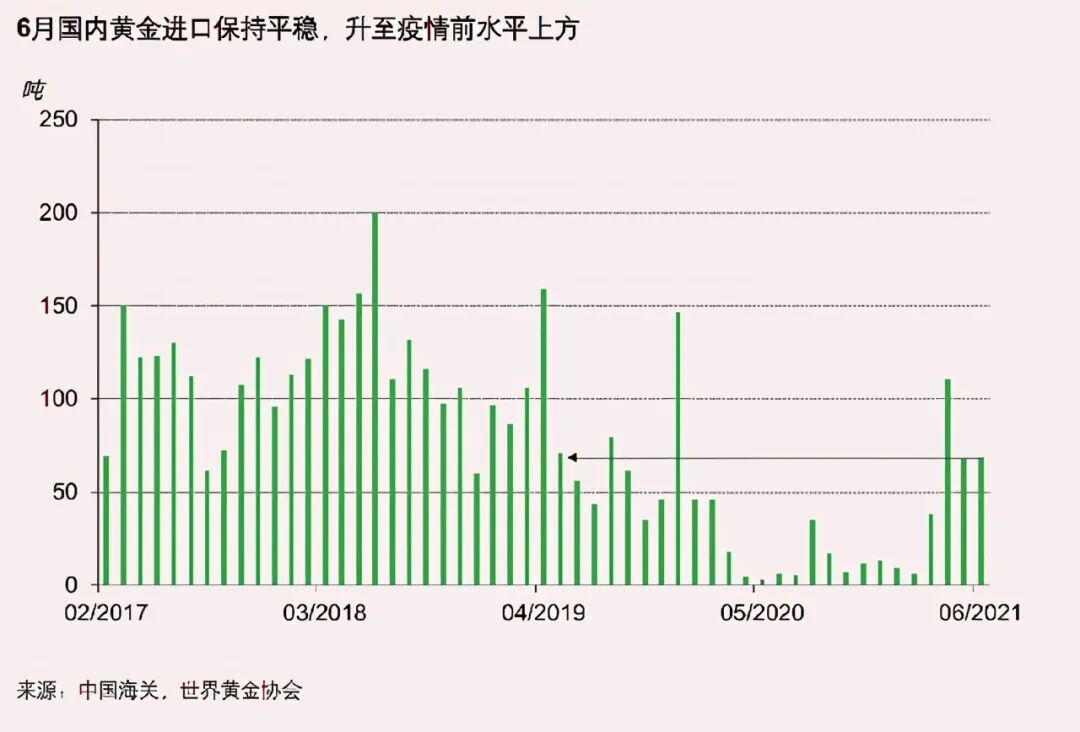 据世界黄金协会最新数据,6月份中国的黄金进口总量为68吨,这令二季度的黄金进口总量达到了247吨,同比增加232吨,同时,6月中国黄金ETF流入2.1吨,总量达68.7吨。