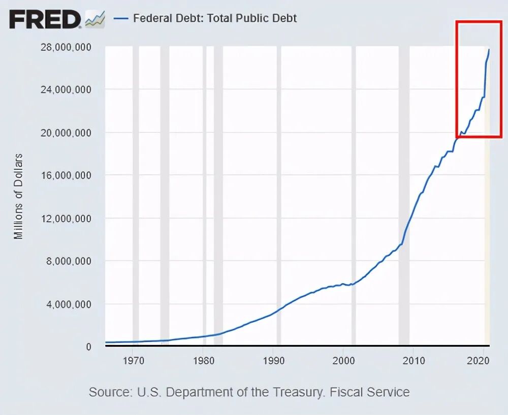 自去年3月以来,美联储资产负债表的规模大约翻了一番,目前为8.35万亿美元,财政部管理的联邦债务总额规模更是增加了5万亿美元至28.6万亿美元,当然,这会导致通胀飙升,但每次爆发新的危机时,他们的解决方案就是印钱、借债和花费更多的钱。BWC中文网财经研究团队计算发现,8月26日,美国十年期国债收益率为1.338%,经7月通胀率(5.4%)调整后,10年期美债的实际利率为负4.062%,且负值区间已持续35周,这在美国经济史中是很罕见的,很明显,这是美国开启无底线货币政策后的结果。