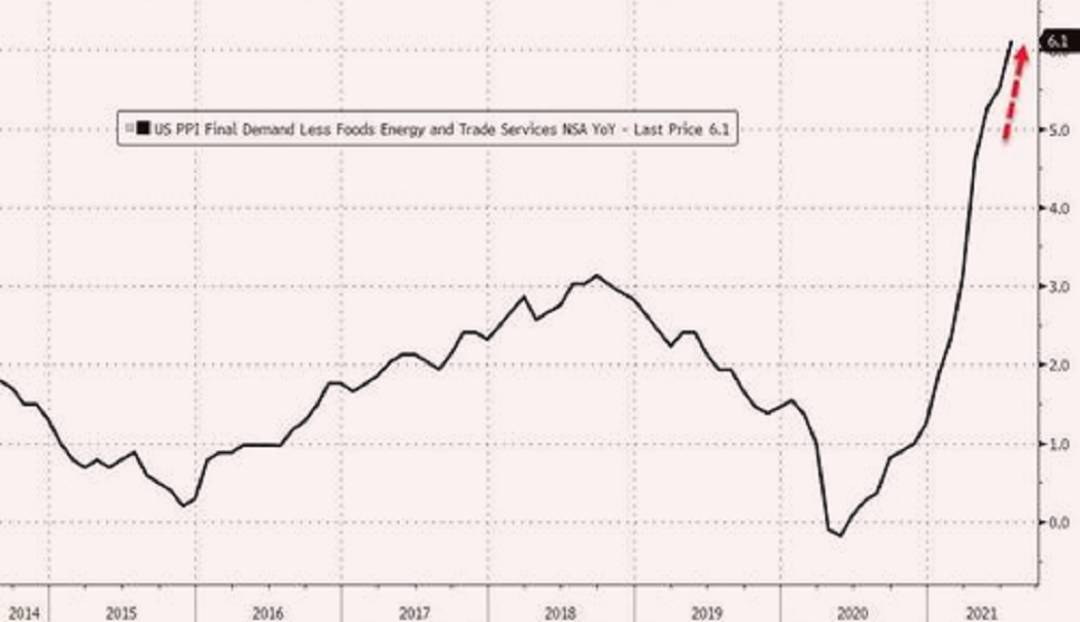 不过,目前,美联储仍继续维持接近于零利率和每月购买1200亿美元规模的债券,按美国货币基数10倍来计算,相当于每月转换成M2的资金量为1.2万亿美元,这意味着美联储每小时向金融系统注入超过10亿美元的基础流动性,现在,美联储主席也公开承认通胀会比预期更高、更持久,目前美国最新公布的7月通胀数据已创下13年以来的新高至5.4%(与6月持平),且仍在继续攀升。