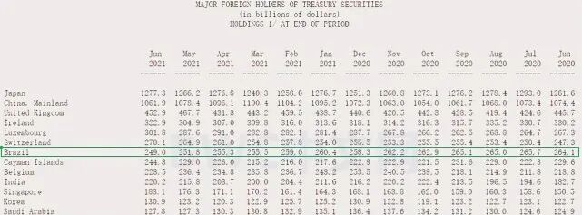 而事情的另一个新变化是,据美国财政部8月16日公布的最新一期国际资本流动报告TIC(美债数据延后两个月惯例公布),如下图:自今年2月至今年6月,巴西连续5个月抛售美国国债,共抛售114亿美元的美国国债,抛售比例达到巴西持有美债总数的近5%。而巴西连续5个月抛售美债,在美债的持有国中,也是非常罕见的。分析认为,这是巴西不再青睐膨胀美元类资产的迹象。